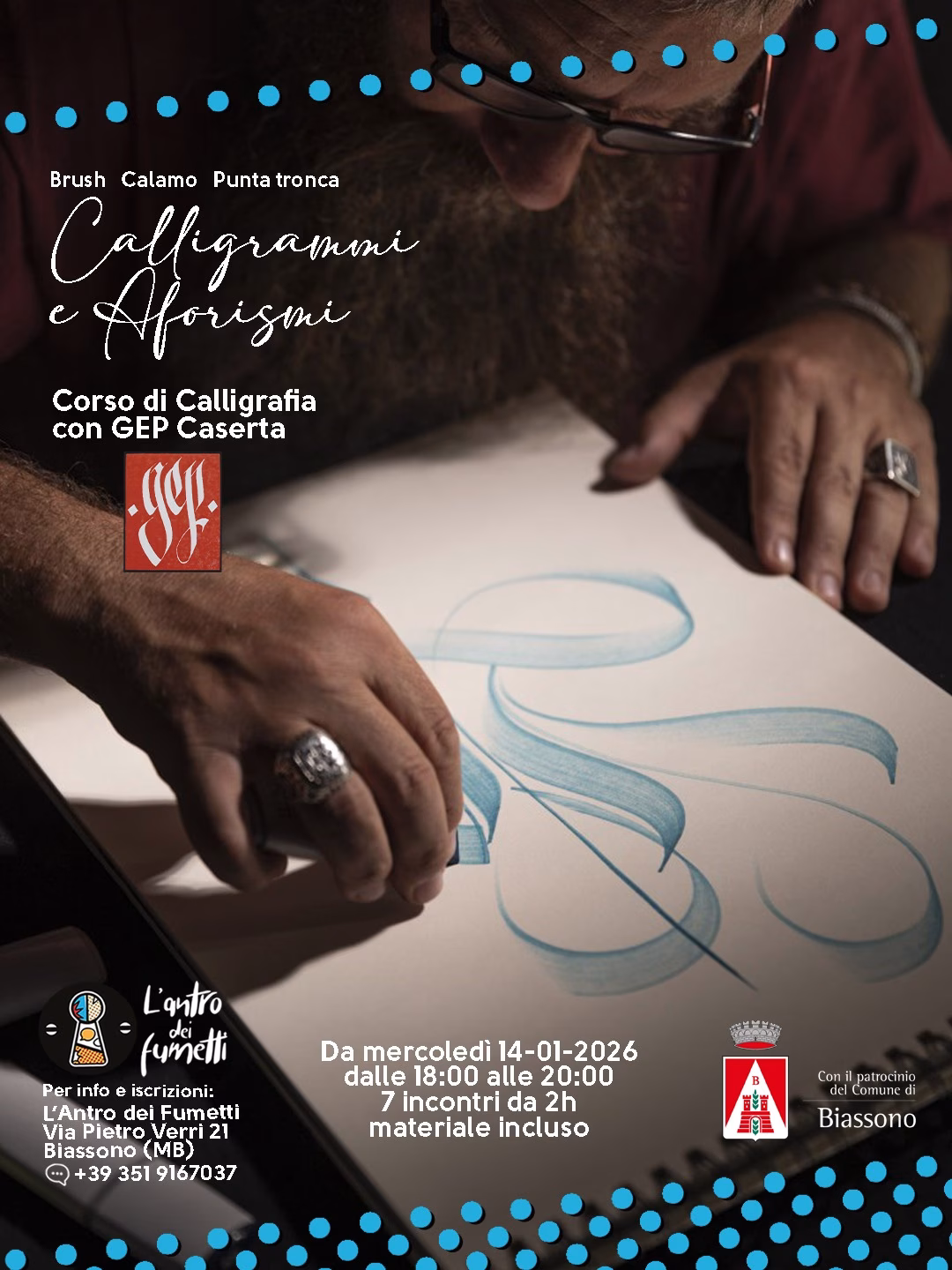 Dopo il grande successo della scorsa edizione e del nostro speciale LAB di Natale, siamo felici di annunciare l’apertura delle iscrizioni al nuovo Corso di Calligrafia di GEP Caserta, che prenderà il via il 14 gennaio! ISCRIZIONI APERTE QUI!