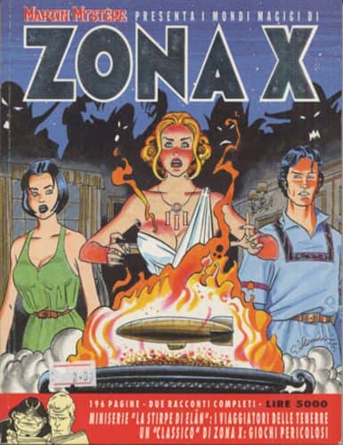 • Zona X, un corposo albo che, nell’arco di 196 pagine, ospita due storie complete “ai confini del possibile”, presentate, o comunque idealmente sponsorizzate, dal detective-archeologo-viaggiatore ideato da Alfredo Castelli.